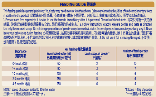 5. 準備餵哺前,把奶液滴在手腕上試溫。沖調後馬上餵哺(不要儲存)。請把喝剩的奶液倒去。