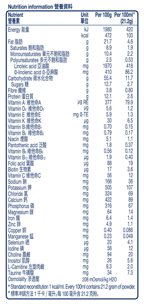 Fortini 1+ 紐荃星壹加是一個可提供全營養的高能量(100kcal/100mL) 特殊醫用配方粉,專為1-10歲有營養不良或有營養不良風險的兒童而設,並作為膳食管理,促進營養的全面均衡攝入及成長。本產品含有全面和均衡的營養素,同時添加了膳食纖維(低聚半乳和低聚果糖)和中鏈三酸甘油酯,支持腸道健康和吸收。