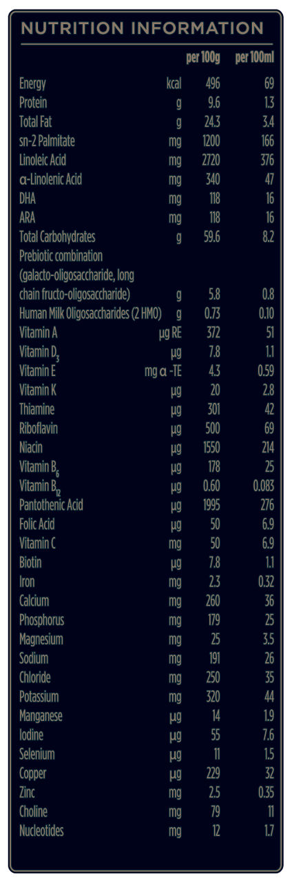 2. 必須遵照指示準備沖調用具,只能使用罐內量匙。除非有醫生的建議,否則不要改變奶粉沖調比例。不恰當的沖調比例不利於寶寶的健康。請勿讓寶寶獨自進食。