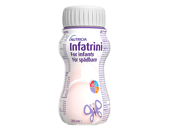 Infatrini 專業呵護嬰幼兒,為成長速度不達標的寶寶提供全面營養支援。高熱量配方(1千卡/1毫升)。含理想的蛋白質能量比例、膳食纖維組合、豐富DHA及AA等,促進寶寶追趕性成長速度。