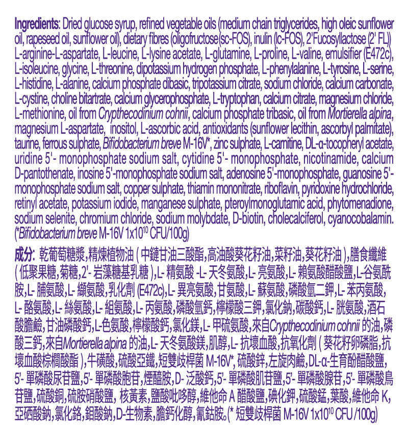 優選無敏益生元 scFOS/lcFOS,及母乳中常見的益生菌種短雙歧桿菌 M-16V,平衡腸道微生態支持免疫力。Neocate 紐康特®作為全球首款針對嬰兒食物過敏的氨基酸配方粉,從1984年起為全球過千萬過敏寶寶提供了一系列牛奶蛋白和食物過敏的營養管理方案。