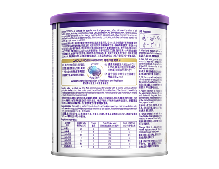 紐康特®星諾 Neocate® SYNEO™ 適合0-12個月嬰兒的唯一營養來源。在醫護人員的指導下使用。